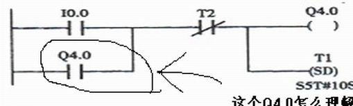 當(dāng)按下I0.0后,輸出Q4.0得電由Q4.0輔助觸點自鎖;同時T1同樣得電延時10秒動作。