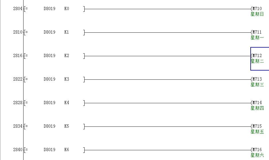 D550起是觸摸屏的時(shí),分設(shè)定寄存器,M700-M706是用與不用選擇,M710-M716就是我上面加上去的星期幾,可以用d8019直接寫。測(cè)試允許是我們機(jī)器上用的不必理會(huì)。