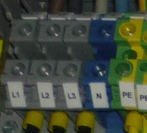三相四線的電纜,分別為L(zhǎng)1 L2 L3 PE  。