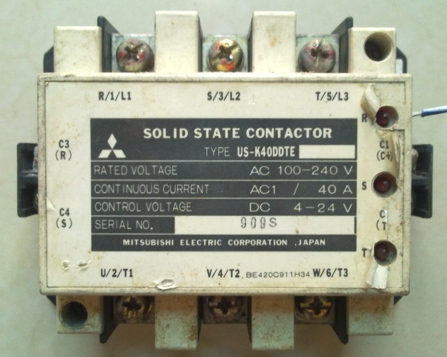 三菱的三相固態(tài)繼電器(接觸器),電壓是三相100-220V,日本本土使用的產(chǎn)品,控制電壓是4V-24V直流,不能接380V的。