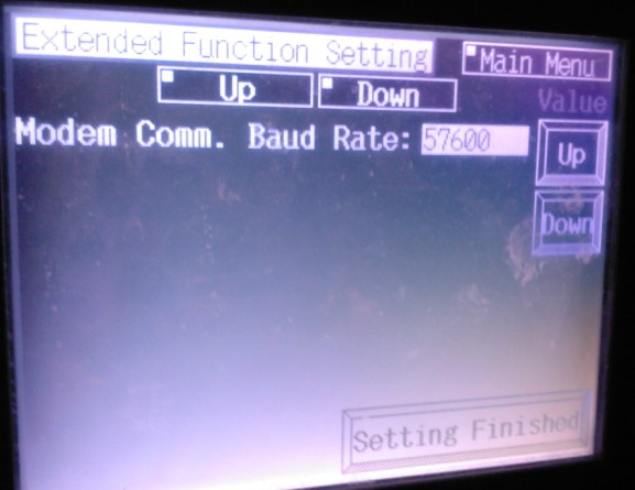 你的通訊速率選擇錯(cuò)誤,不要選擇任何速率。按人機(jī)down鍵到?jīng)]有速率顯示,再按setting ....鍵。完畢即可!