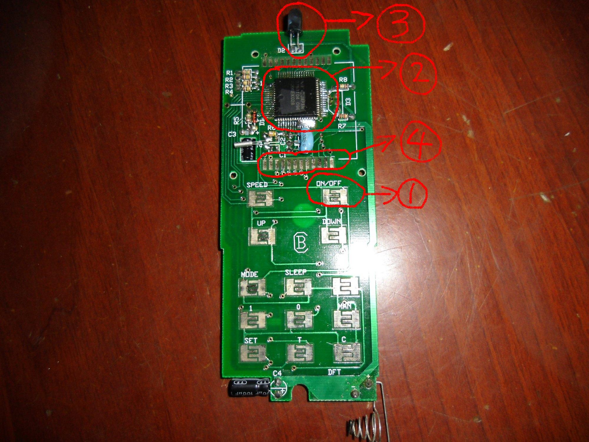 IC1內部的掃描信號發(fā)生器產生五中不同時間的掃描脈沖信號,由5~9腳輸出送至鍵盤矩陣電路。當按下某一鍵時,相應于該功能按鍵的控制信號分別由10~14腳輸入到鍵控編碼器,輸出相應功能的數(shù)碼信號。然后由指編碼器輸出指令碼信號,經過調制器調制在載波信號上,形成包含有功能信息的高頻脈沖串,由17腳輸出經過晶體管BG放大,推動紅外線發(fā)光二極管D發(fā)射出脈沖調制信號。