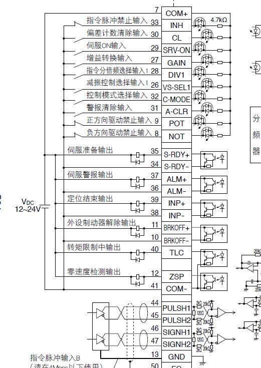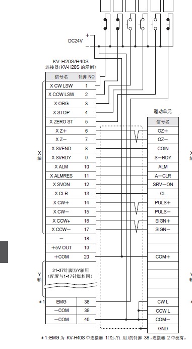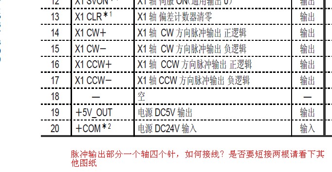 這個(gè)是基恩士H40S定位模塊的輸入輸出接線圖的一部分,看到與驅(qū)動(dòng)器接線的圖紙中間沒有接電源,有可能是公共的,可是例如“伺服就緒”、“伺服結(jié)束”“Z相"之類的用的是5V電壓,為何又這樣接呢?針對(duì)說明書我有些懷疑,脈沖輸出部分要求也是5V電壓,KV-1000主機(jī)可以接24V的,也可接5V,問了客服似乎也不確定這個(gè)只是說能與伺服接線。 看到一般伺服只有12V和24V的集電極開路的接入方式,沒有5V的,直接接針對(duì)這個(gè)我有些懷疑。 接的是松下伺服,驅(qū)動(dòng)器輸出分正負(fù),看到說明書只接了一根,應(yīng)該每一個(gè)另一根負(fù)接OV才對(duì)。 把驅(qū)動(dòng)器的輸出接到定位模塊輸入似乎要電壓,看說明書似乎另外要加電源。每個(gè)軸四個(gè)針號(hào),是否要把負(fù)邏輯部分短接0V。[ 此帖被gali1120107在2011-11-10 17:05重新編輯 ]