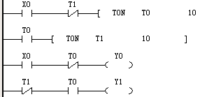 如果X0一直O(jiān)N,T0時(shí)間到之前Y0會(huì)ON,T0