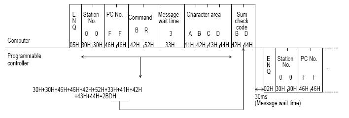 計(jì)算機(jī)發(fā)送一般格式(順序發(fā)送) :通訊使能,PLC站號(hào),計(jì)算機(jī)站號(hào),控制命令,等待時(shí)間,發(fā)送的數(shù)據(jù)內(nèi)容,和校驗(yàn)