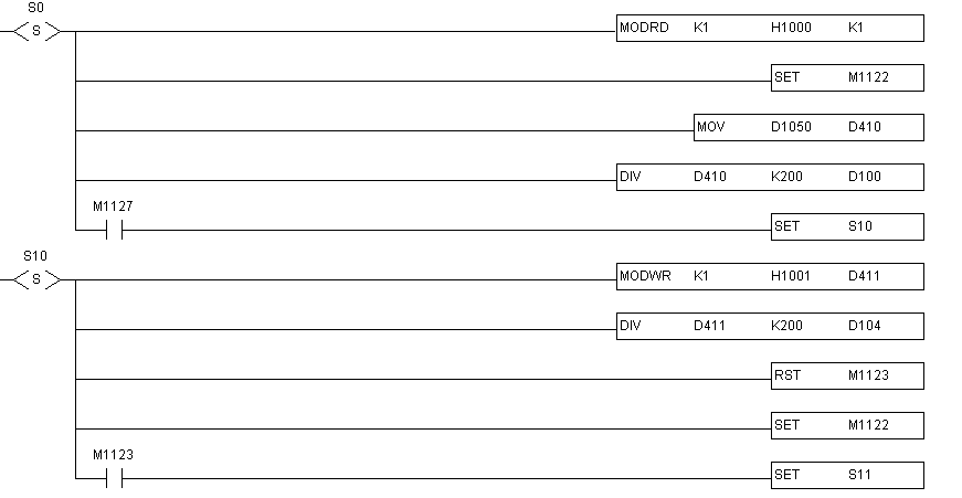 你這個(gè)程序也挺奇怪的,看到示例里一般用計(jì)數(shù)來(lái)執(zhí)行MODBUS指令.不知道用步進(jìn)指令到底可行不.