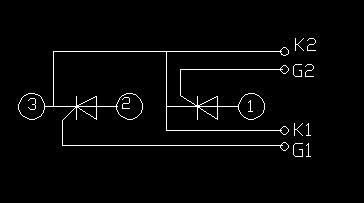 你看看器件側(cè)面是否有一個這樣的圖,如有它就不是IGBT器件,是一個復合可控硅,它的觸發(fā)電路沒有IGBT的那么苛刻,在交流電調(diào)速中使用注意觸發(fā)相位,大多數(shù)的調(diào)速電路都是選用雙向可控硅,K1、K2是與輸出端3腳相通的,G1、G2分別是兩個可控硅的控制極,1腳、2腳是陽極。觸發(fā)電路你可以參考勵磁調(diào)速器里的觸發(fā)電路。