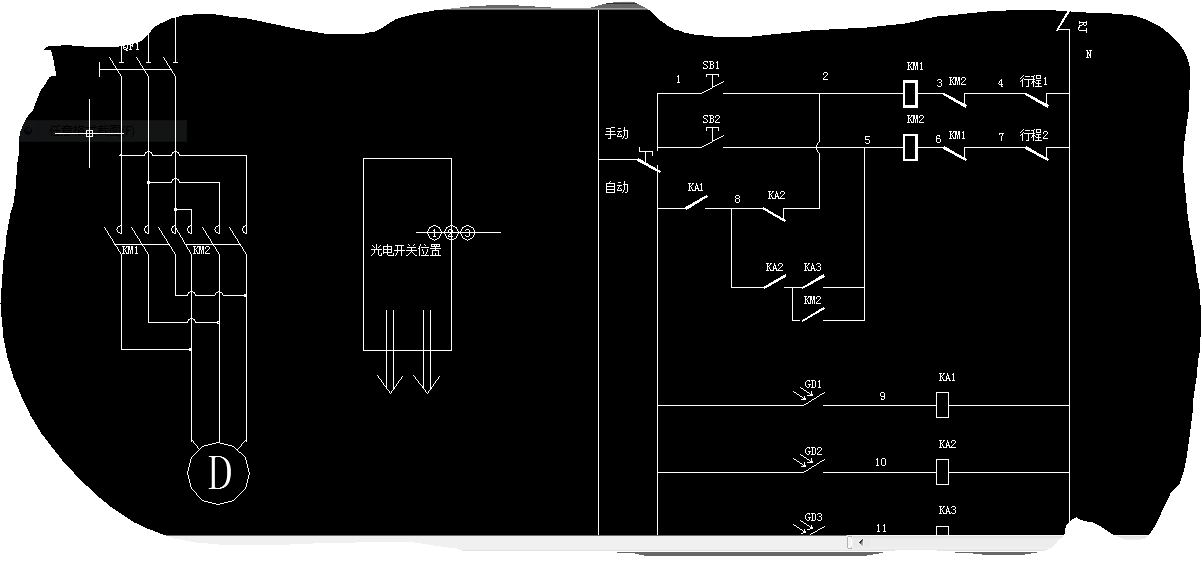 一 2#光電 3#光電不阻擋時電機正轉(zhuǎn),2#光電阻擋時停止。