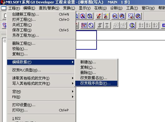 在軟件左上角的 工程--編輯數(shù)據(jù)---改變程序類型