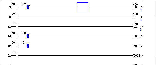 這是我自己在仿真寫的程序,只是不知道這個(gè)時(shí)間繼電器常閉,比如T2 是不是當(dāng)它三秒計(jì)時(shí)完以后常閉點(diǎn)會(huì)斷開然后又馬上恢復(fù)常閉,是否這樣?請(qǐng)大哥賜教