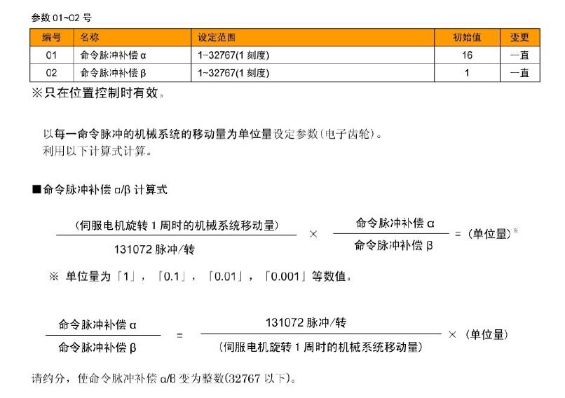 大家看這是富士伺服的電子齒輪比,比如我讓PLC發(fā)1000個(gè)脈沖,電機(jī)轉(zhuǎn)一圈的話,這2個(gè)參數(shù)應(yīng)該怎么設(shè)置?