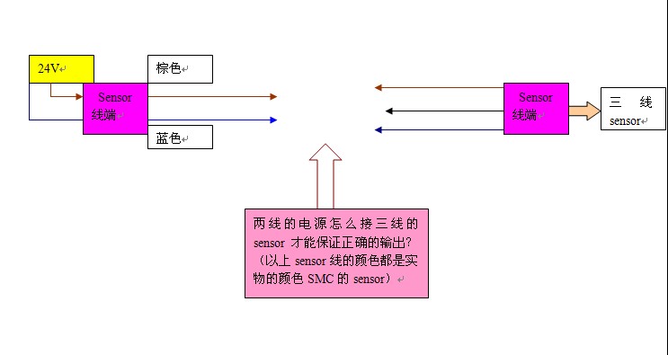 一般棕色接正,藍色接負(fù),多一條信號線看是什么類形的傳感器