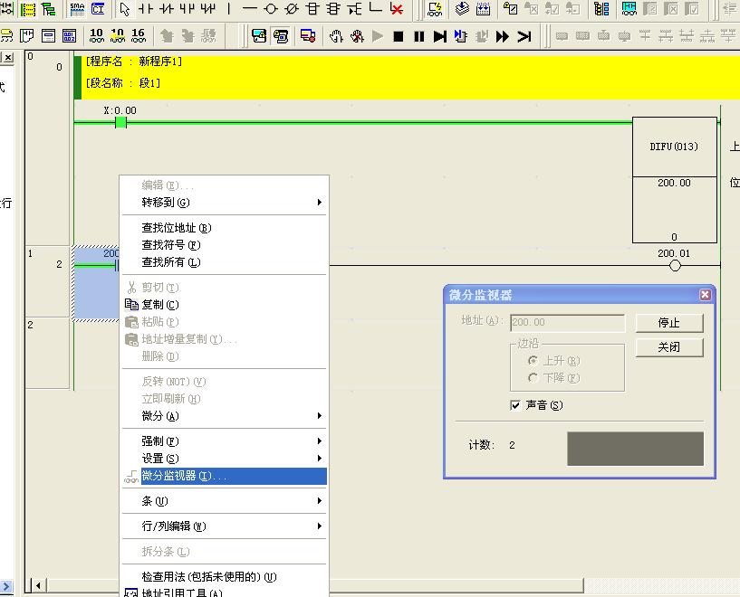 歐姆監(jiān)視模式中下降沿線圈接通,觸點不會動作。怎么回事?新手