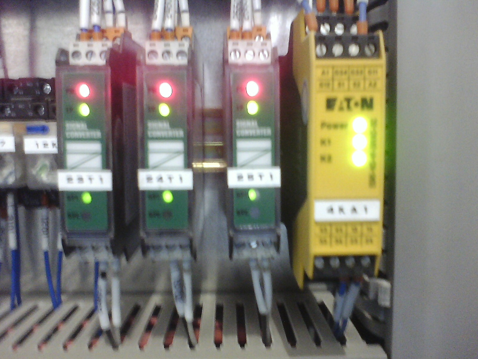 樓上的那個(gè)黃的是安全繼電器,左邊的好像是什么信號(hào)調(diào)理一類的模塊,比如電壓或電流隔離之類的,再上面的看到實(shí)物,根據(jù)設(shè)備功能或許能猜出一二。