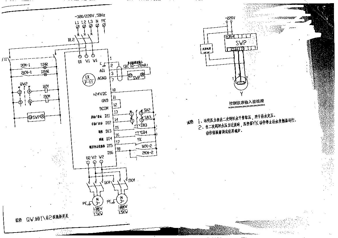 更換變頻器后,不知道根據(jù)這個電路選哪個“宏”,另,低于一定壓力電機工作,到達一定壓力工作停止應如何設置。謝謝各位。