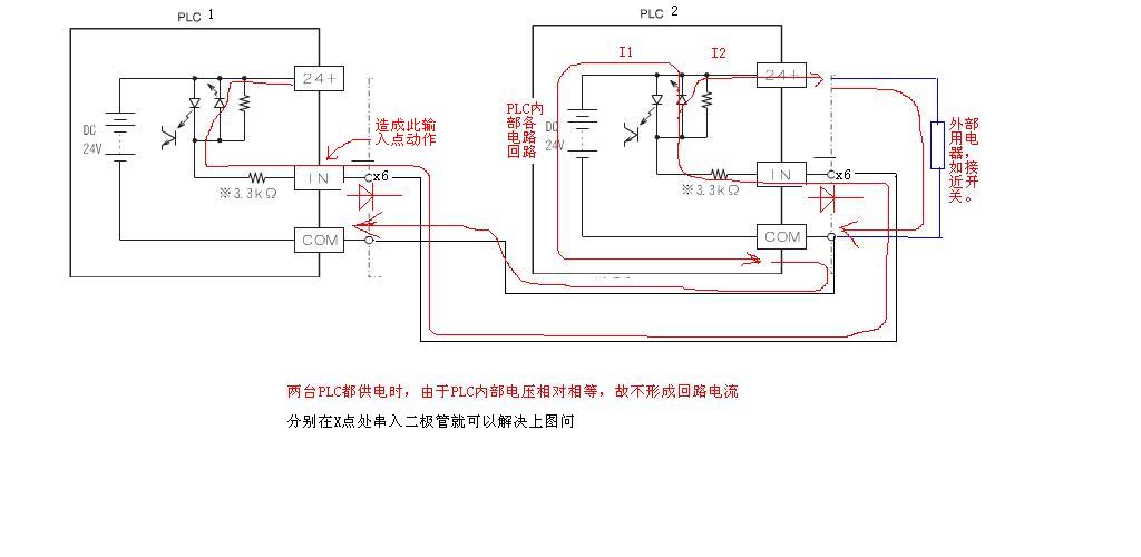 有兩臺(tái)三菱FX2N PLC,電源獨(dú)立。我將兩臺(tái)PLC的輸入點(diǎn)X6分別并聯(lián),COM線分別并聯(lián),接在液位開(kāi)關(guān)的常開(kāi)點(diǎn)兩端,出現(xiàn)的問(wèn)題就是液位開(kāi)關(guān)斷開(kāi)時(shí),當(dāng)在一臺(tái)PLC通電,另一臺(tái)不通電的情況下,通電那臺(tái)PLC的X6會(huì)有輸入信號(hào),當(dāng)兩臺(tái)PLC都通電時(shí),這種情況又消失了,恢復(fù)正常。