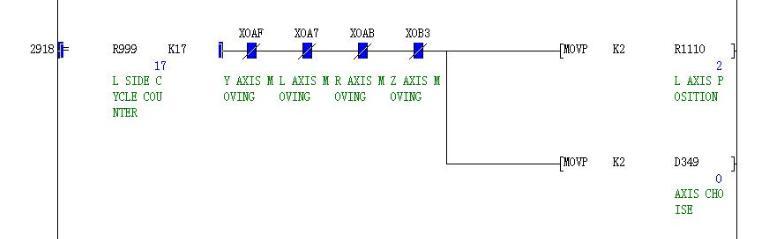 上面的程序中,D349在條件滿足時(shí)卻沒有被給值2,而R1110已經(jīng)正常給值2,此時(shí)并沒有其它地方給D349值,什么原因?是PLC運(yùn)行錯(cuò)誤嗎?
