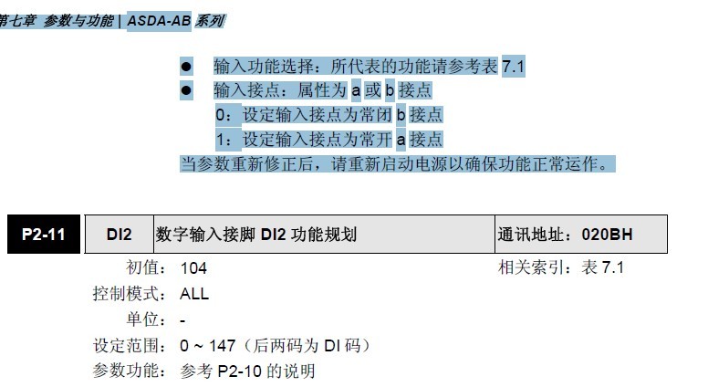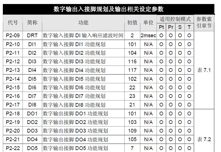 還有在定義輸入腳的時候,比如OD1對應的是CN1插頭第七腳,它需要來設(shè)置參數(shù),對應什么樣的功能,說什么輸入功能選擇見表7.2,表7,2在哪里,找不到