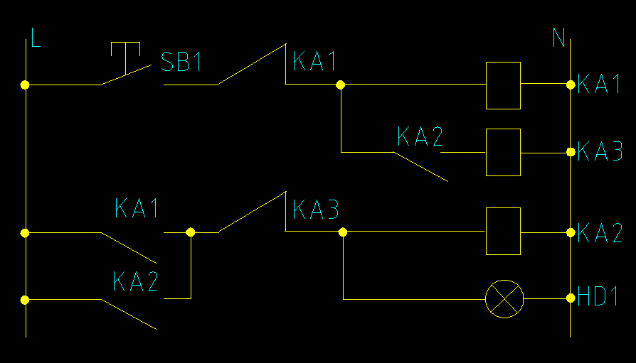 見圖,SB1為按鈕,KA1、KA2、KA3為中間繼電器,HD為指示燈