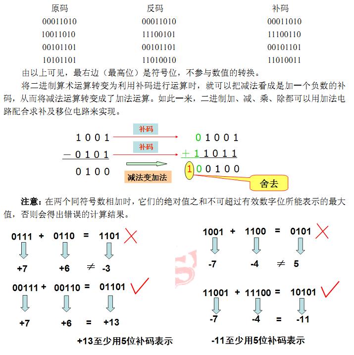 如果我們能設法將減法操作轉化為某種形式的加法操作,那么加、減、乘、除運算就全部可以用"移位"和"相加"兩種操作實現(xiàn)了。為了解決這個問題,計算機引入了原碼、反碼和補碼的概念。