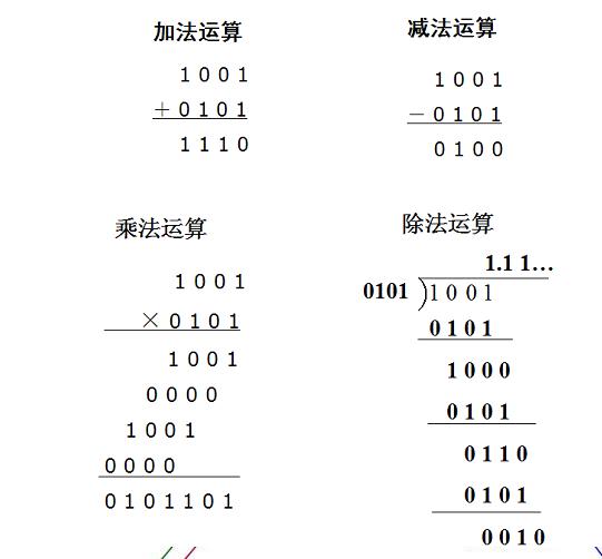 二進制算術運算和十進制算術運算規(guī)則基本相同,區(qū)別是“逢二進一”。