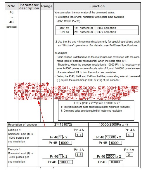 你可以試試將46=1,4A=16,4B=10000試試看,表格的第二個(gè)和文字描述的不一樣,文字描述的是40000,表格是4000,所以估計(jì)誤導(dǎo)你了。應(yīng)該是40000,這樣比例為1/4,你的分子越大轉(zhuǎn)速越快的。