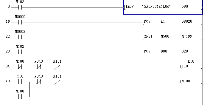 請(qǐng)看看這段程序什么意思PLC是FX3U的,這個(gè)$MOV "2A6N001K1L06" D90里面的2A6N001K1L06這些是什么意思?