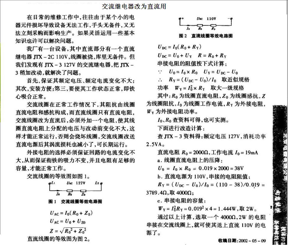 在沒有直流繼電器的情況下,用同等級電壓的交流繼電器代替使用。(從網(wǎng)上找的,沒辦法下載,只能截圖上傳了)