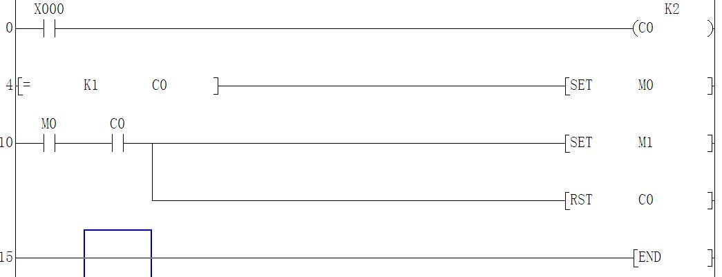當(dāng)一個按鈕要先后完成兩個動作時,和下個程序做比較,它省去了計數(shù)器和比較指令。邏輯更加簡潔。