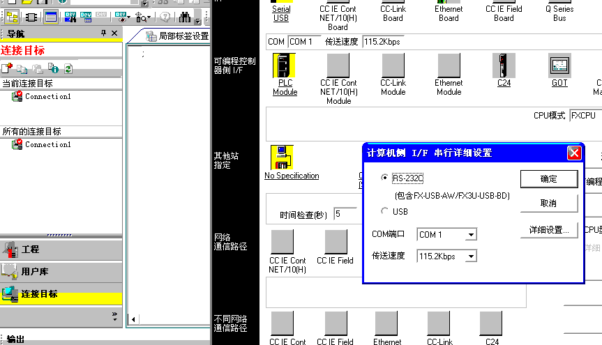 雙擊過了,里面有個連接目標(biāo)設(shè)置項(xiàng),我點(diǎn)擊計(jì)算機(jī)側(cè)I/F的USB,出現(xiàn)RS232和USB選項(xiàng)。兩個我都試過,還是不行。但我OMRON PLC又能用。他們說是我買的轉(zhuǎn)接器不對,是非標(biāo)的。OMRON能用,三菱不一定也能用。這下還真遇到麻煩了。得買好幾個轉(zhuǎn)接器了。 |