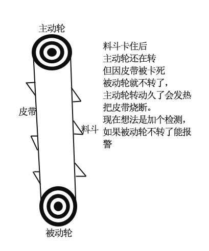一臺皮帶機(jī),經(jīng)常會因料斗被卡住后主動托輪繼續(xù)轉(zhuǎn)動而燒斷皮帶,請教有什么東西可以檢測被動輪沒轉(zhuǎn)動?就是在檢測到被動輪沒有轉(zhuǎn)動時(shí)讓它輸出報(bào)警信號,請老師們幫忙,謝謝!