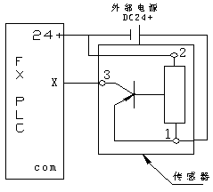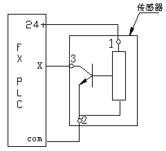 三菱 FX-PLC 的輸入端子既可以接受電流輸入也可接受電流輸出的連接方式,(即 FX-PLC 的輸入端子既可作為漏型輸入也可作為源型輸入連接)關(guān)鍵要掌握接線方式。具體接線方式按下述: NPN 型接近開關(guān)接成漏型輸入方式,只需將接近開關(guān)的開關(guān)輸出端子( + )接入 PLC 的輸入端子,接近開關(guān)的另一端子(—)接 PLC 的 COM 端。 PNP 型接近開關(guān)接成源型輸入,則應(yīng)把 PLC 的 24V+ 端子接外部電源的負(fù)極,外部電源的正極接接近開關(guān)的( + )端子,接近開關(guān)的另一端(—)則接 PLC 的輸入端子。