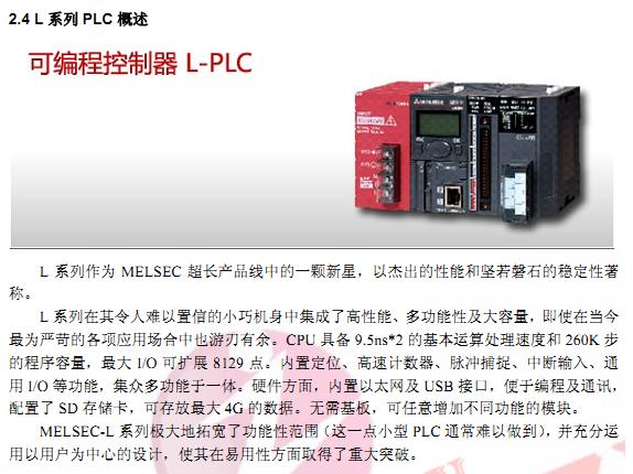 三菱電機新一代PLC軟件,具有簡單工程(Simple Project)和結(jié)構(gòu)化工程(Structured Project)兩種編程方式,支持梯形圖、指令表、SFC、 ST及結(jié)構(gòu)化梯形圖等編程語言,可實現(xiàn)程序編輯,參數(shù)設(shè)定,網(wǎng)絡(luò)設(shè)定,程序監(jiān)控、調(diào)試及在線更改,智能功能模塊設(shè)置等功能,適用于Q、QnU、L、FX等系列可編程控制器,兼容GX Developer軟件,支持三菱電機工控產(chǎn)品iQ Platform綜合管理軟件iQ Works,具有系統(tǒng)標(biāo)簽功能,可實現(xiàn)PLC數(shù)據(jù)與HMI、運動控制器的數(shù)據(jù)共享。