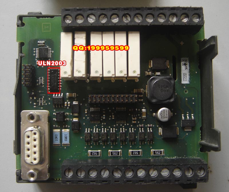 更換以后電源正常,有24V輸出。 接上數(shù)據(jù)線,傳入輸出點(diǎn)檢測(cè)程序,發(fā)現(xiàn)輸出04點(diǎn)繼電器無(wú)動(dòng)作,單獨(dú)加電給該繼電器能動(dòng)作。檢查繼電器驅(qū)動(dòng)IC ULN2003,該IC15腳接04點(diǎn)繼電器,查15腳無(wú)輸出,更換ULN2003一切正常。