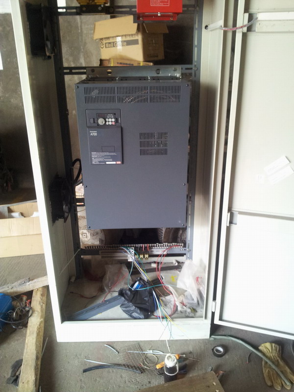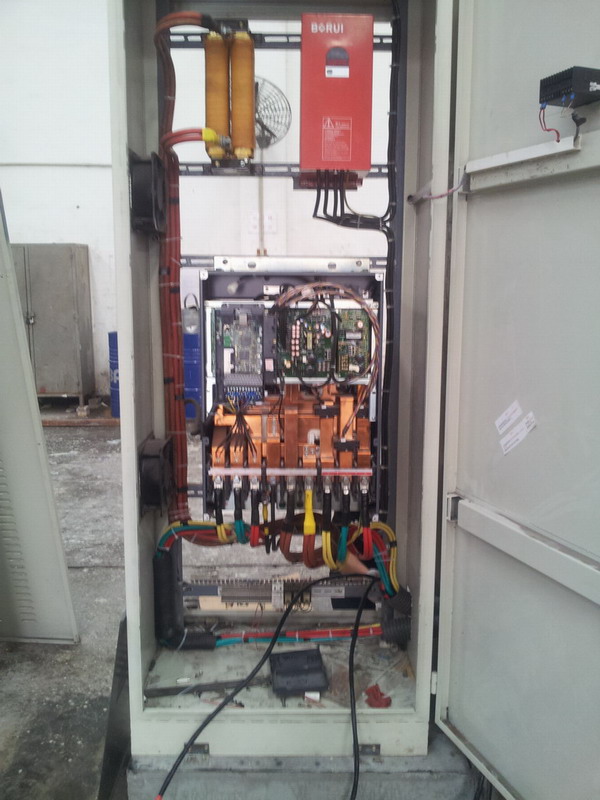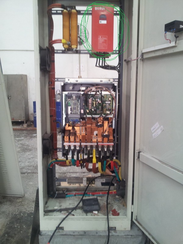 一臺石材框架鋸意大利的設(shè)備,飛輪裝變頻器速,三菱A740-132K的變頻器,加裝制動單元,不多說上圖