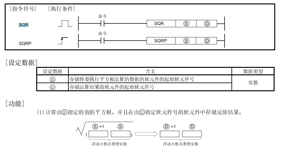 FX3U 有2進(jìn)制浮點(diǎn)數(shù)開(kāi)方指令