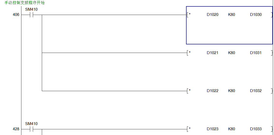 三菱Q系列,三菱變頻器,這個(gè)手動(dòng)控制變頻器程序里、乘法指令是么意思?是脈沖還是什么?求高手詳解?