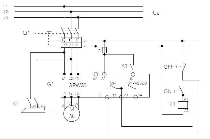 從樓主的圖上來(lái)看,旁路是在內(nèi)部實(shí)現(xiàn)。即內(nèi)部含旁路接觸器。邊上的K1是不是抱閘接觸器?