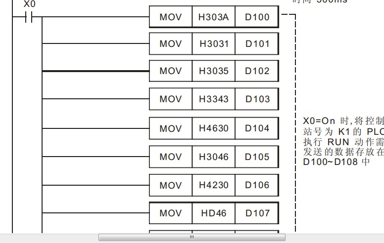 臺(tái)達(dá)101實(shí)例中的 兩臺(tái)PLC通訊  ,程序中有下面這一段, MOV  H303A D100   。     H303A是什么,以前沒搞過通訊。求大神指定一二