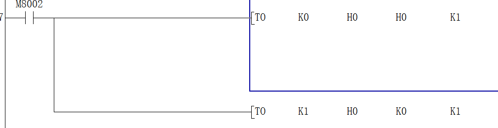 TO 特殊功能模塊寫指令      K0是指o#特殊模塊(緊挨著PLC的第一個(gè)模塊)   H0是指寫入模塊的BFM首址   第二個(gè)H0是指PLC的存儲(chǔ)首址   K1是指?jìng)魉?個(gè)數(shù)據(jù)