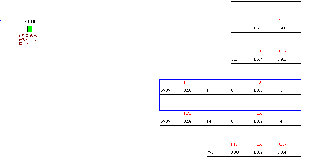 遇到同樣問題  有兩個寄存器D10 、D11,D10=H0001、D11=H056,現(xiàn)在我需要將D10的低8位和D11的低8位合到一起存到另外一個寄存器D12里,D10的值為D12DE 高8位,D11D的值為D12的低8位 應(yīng)該怎么做?