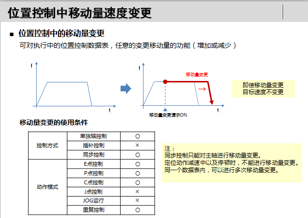 可能大家有的沒有明白我的意思,運動中更改什么意思呢?就是比如三菱絕對定位指令DRVI K20000 K5000 Y0 Y4已經(jīng)被驅(qū)動了,那這時伺服是不是已經(jīng)開始運行了呢?是的,伺服正朝著目標值K20000接近,此時我突然改變目標值K20000為K30000,這時正在行進中的伺服不可以停機而改到K30000的地點定位停機。