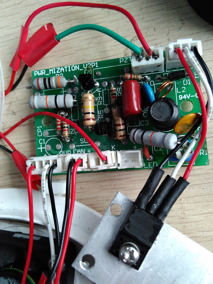 老板臺灣帶過來的小加濕器壞了,故障是只有水柱沒有霧氣產(chǎn)生,查遍原件沒發(fā)現(xiàn)壞的,換陶電震蕩器故障依舊,驅(qū)動三極管上字磨掉看不清,換BU406只有點水波,換C3835有水柱無霧化。有修過的師傅麻煩看看是什么型號的原件。原件左上角小孔里有個K字,右上角小孔有AH字樣,最下排左邊是個K開頭,其他看不見了。