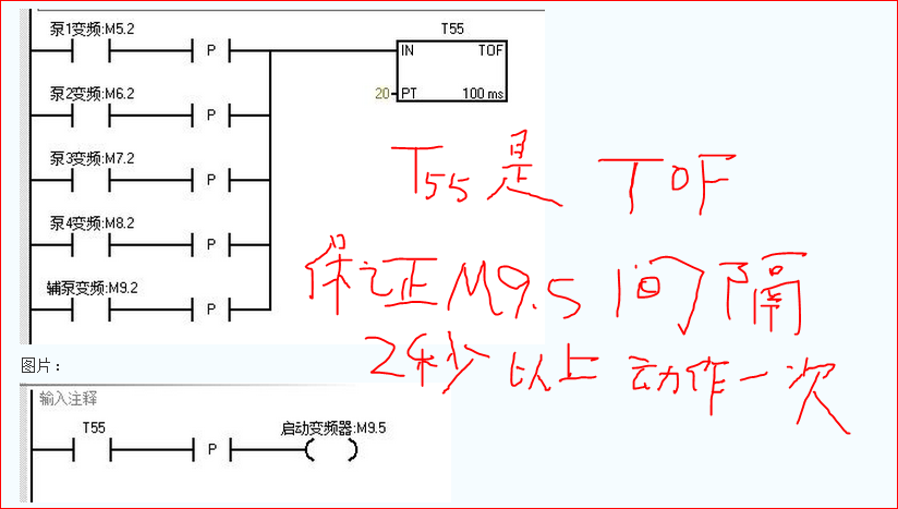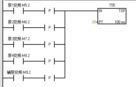 每一個(gè)泵的觸點(diǎn)接通后延時(shí)2秒后啟動(dòng)變頻器