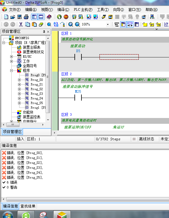 最近接觸到一個臺達(dá)的ES系列的32點的PLC,上傳上來的程序,啥也不動,直接點編譯,,提示我錯誤,附件里是我截屏的圖,,,有懂臺達(dá)的朋友,幫忙看看,,,我第一次搞臺達(dá)這個,感覺,使用上,不如大品牌用著順手,,,,呵呵,,可能是我用三菱用習(xí)慣了吧,,,嘿嘿,,,請大家?guī)兔,,謝謝