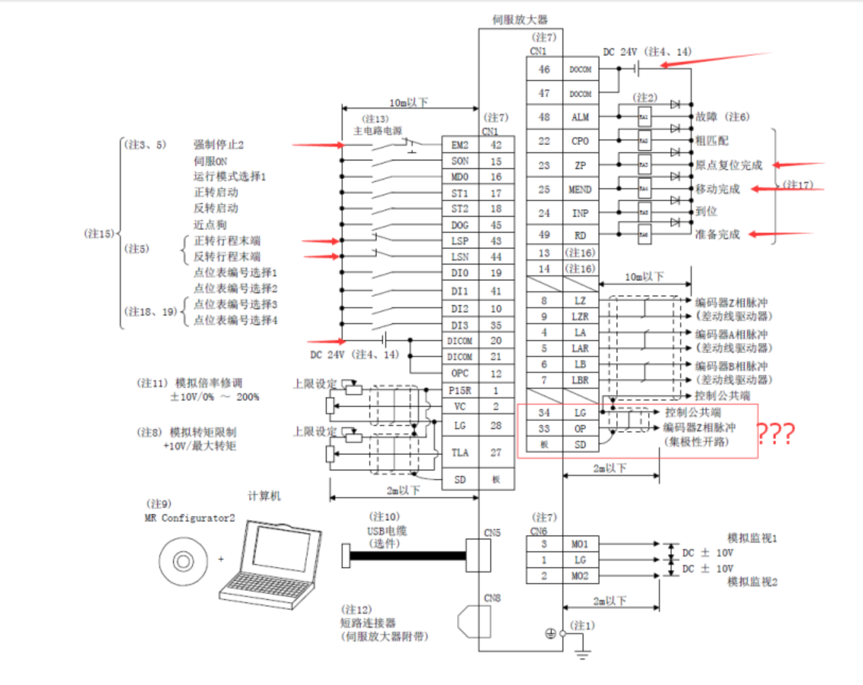 引用引用第2樓1406606700于2017-11-15 08:33發(fā)表的 :問號處的是編碼器Z相脈沖,,在3Uplc用DSZR回原點時可以用到,33 ,34一個LG接com端,一個OP接PLC輸入(X0~X7)......