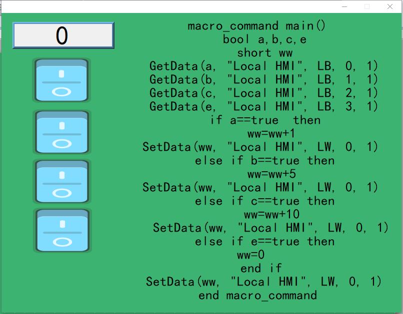 一個字元件,三個位元件,按下其中一個位元件數(shù)值加1,按第二個位元件數(shù)值加5,按第三個位元件數(shù)值加10。想學習一下宏。謝謝。