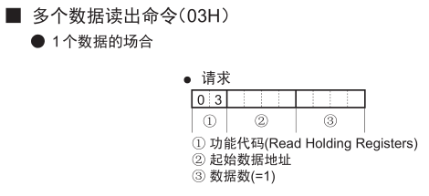 02(站號(hào))03(命令)1234(數(shù)據(jù)地址)0001(1個(gè)數(shù)據(jù))c08f(CRC校驗(yàn)碼)