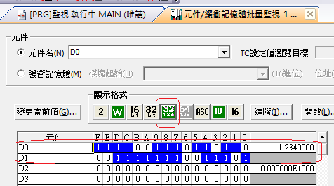 正常情況下,寫個(gè)整數(shù)進(jìn)去,如果要進(jìn)行浮點(diǎn)運(yùn)算可以用 FLT D0 DX 這樣的形式先轉(zhuǎn)換,但是現(xiàn)在要求是直接通過(guò)觸摸屏在PLC中寫入一個(gè)浮點(diǎn)數(shù),PLC為Q系列的PLC。