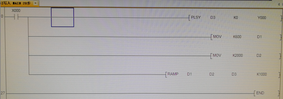 如圖所示程序,在用GX Wroks2模擬時(shí)一切正常D3的值會(huì)從600慢慢升到2800,可是我一把程序?qū)懭隤LC后連接好步進(jìn)電機(jī)后實(shí)驗(yàn),只要X0一閉合D3的值就直接到2800,試了好幾次都是這樣,實(shí)在是想不通,還請(qǐng)大家?guī)兔庾x一下